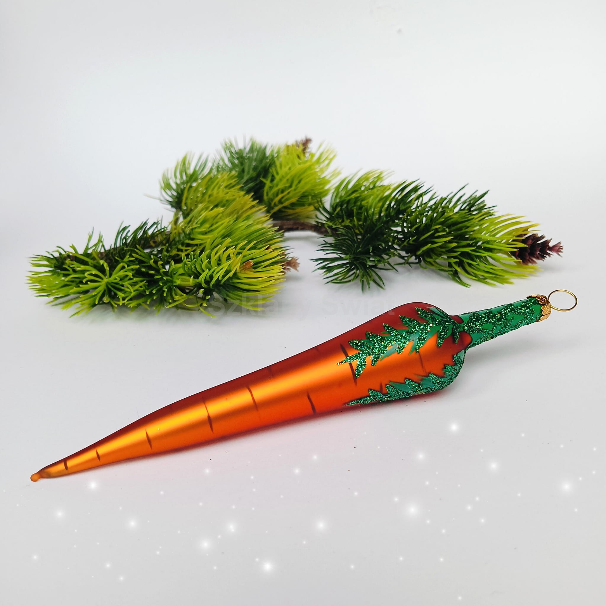 Bombka szklana, ręcznie robiona i formowana, bez użycia formy. Bombka w kształcie marchewki. Oryginalny, niepowtarzalny prezent dla miłośników owoców i ogrodników!